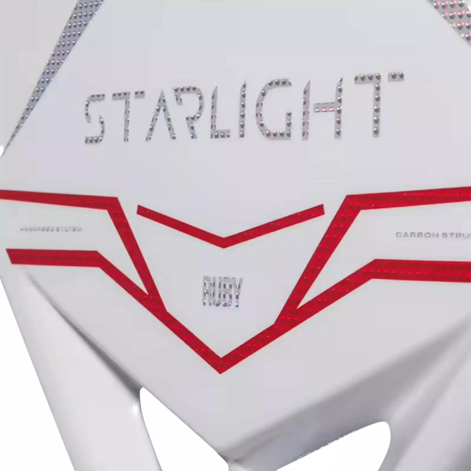 The STARLIGHT RUBY 2026 is the new Heroe's creation designed by athletes Giulia Gasparri and Ninny Valentini. Inspired by the ruby, a symbol of courage, power, and passion, this racket was created for those who take the court with heart.