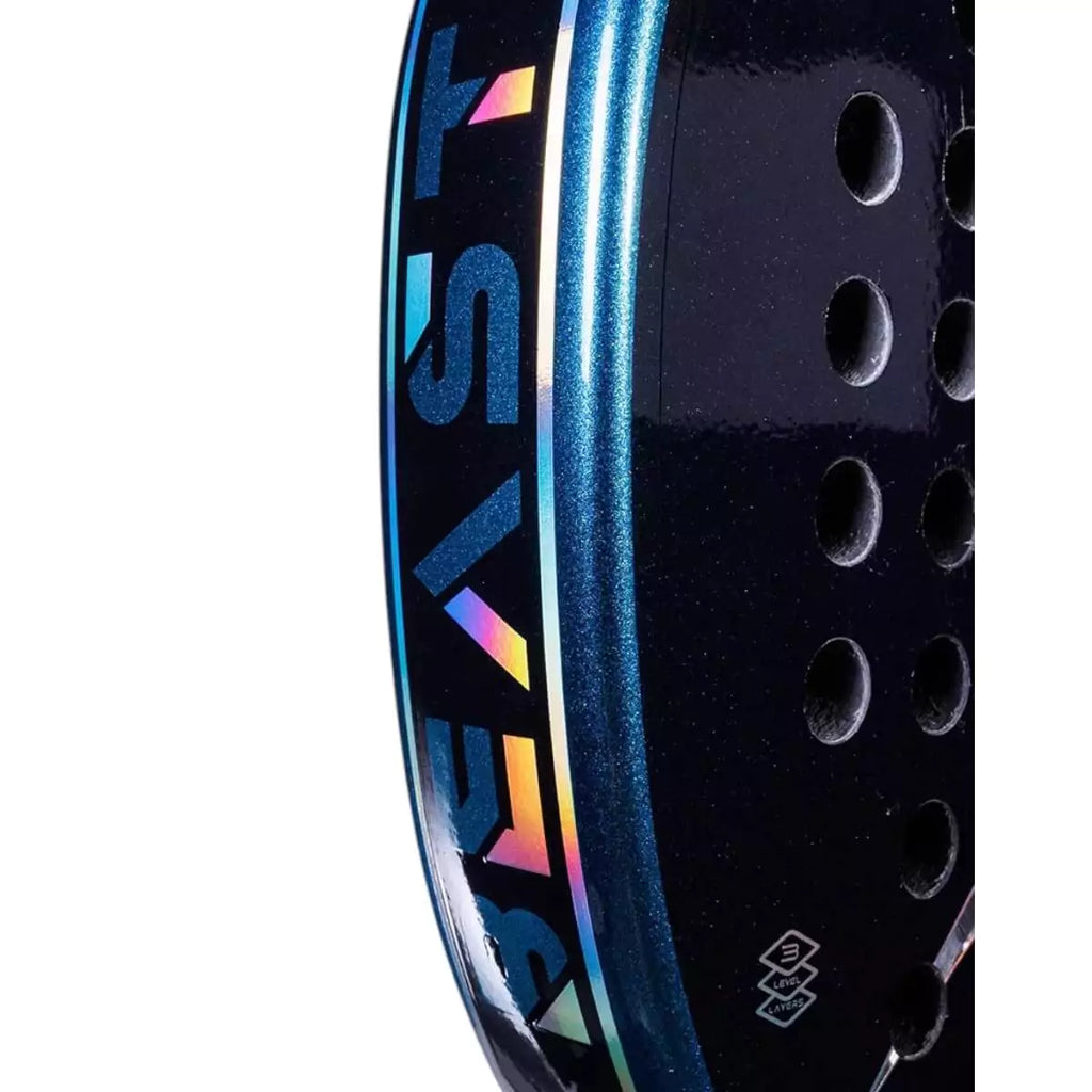 BEAST, new design and Heroe's technologies come together to elevate your game. This renewed 2025 model, improves performance established in the previous season. Designed with a 100% carbon frame, the BEAST offers exceptional attacking power, perfect for players looking to dominate the court.