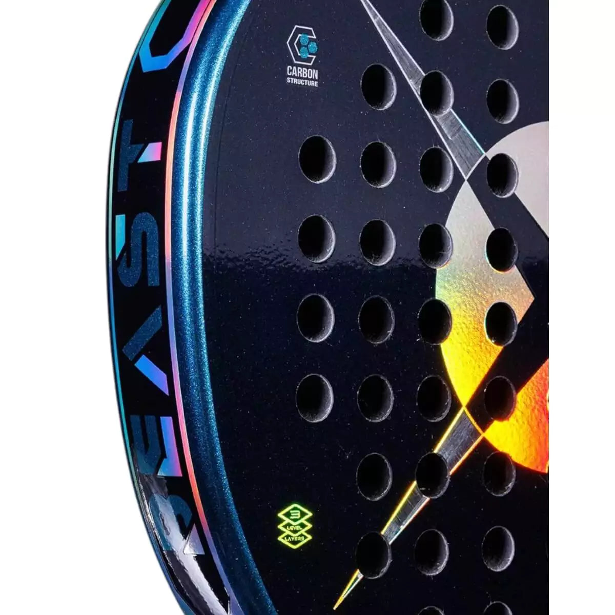 3 Level Layers: Our most complex and technologically advanced racket plate, compared to traditional plates this version is made up of 3 layers which assist each other in the absorption of shots and the consequent response.